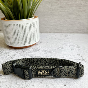 Leopard print is ALWAYS in fashion making this a must have fashion accessory. Cool toned khaki with black leopard spots. Pair it with the matching lead for the ultimate look.